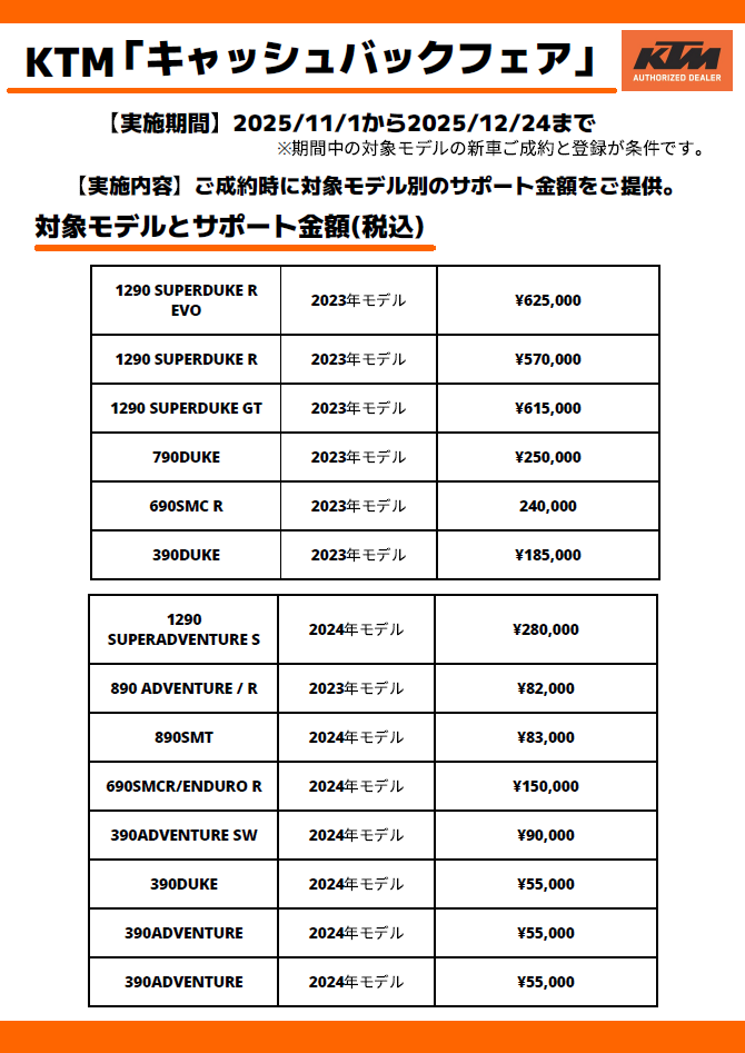KTM キャッシュバックフェア 開催!